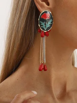 Серьги длинные с маками и подвесками бижутерия