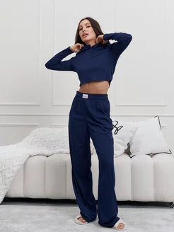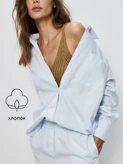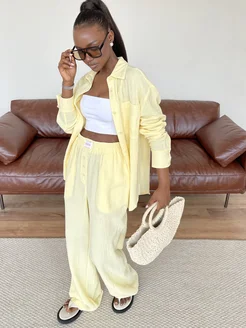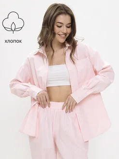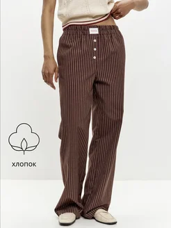 Пижама домашняя хлопковая со штанами и рубашкой в полоску