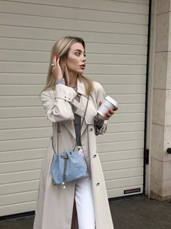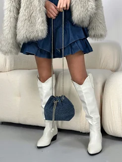 Джинсовая сумка кисет со съемной цепочкой через плечо