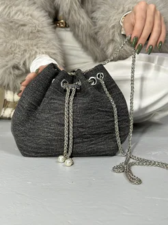 Черная джинсовая сумка со съемной цепочкой Кисет Пельмень