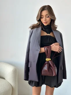 Маленькая кожаная сумка Пельмень Клатч Мешок