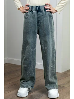 Джинсы y2k стиль со стразами широкие с заниженной талией