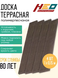 Террасная доска полимерпесчаная, 100х15,коричневая, 4 шт