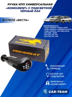 Ручка КПП Гранта, Веста, Приора 2 белая подсветка черн лак