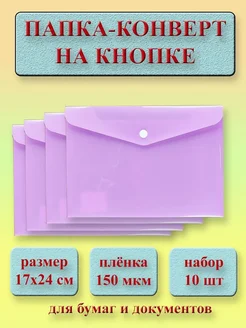 Папка-конверт на кнопке А5,фиолетовая 10 шт
