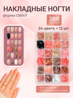 Накладные ногти набор овальные с клеем 288 шт