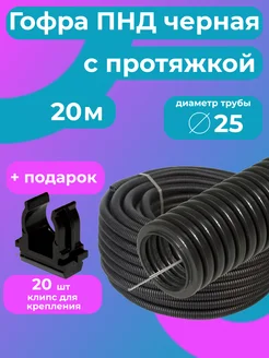 Гофра ПНД D25мм с протяжкой черная 20м + 20 клипс