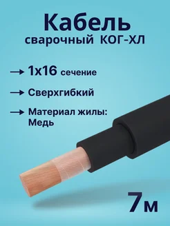 Кабель сварочный особой гибкости КОГ-ХЛ 1х16 - 7м