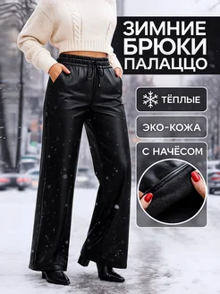 Брюки кожаные утепленные палаццо широкие с начесом
