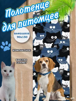 Полотенце вафельное тонкое для питомцев «Кошки» хлопок