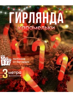 Гирлянда трость новогодняя в виде карамелек красного цвета