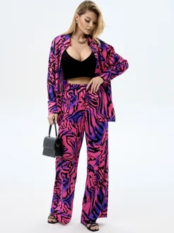 Костюм брючный шелковый с рубашкой пижамный атласный