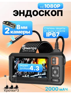 Эндоскоп автомобильный с экраном, поворотный, 8 мм, 5 м
