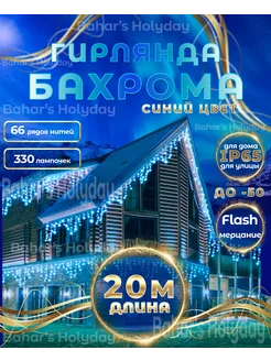Гирлянда Бахрома уличная 20 м на дом синяя голубая холодная