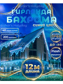 Гирлянда Бахрома уличная 12 м на дом синяя холодная голубая