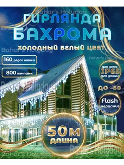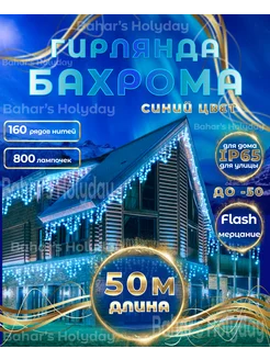 Гирлянда Бахрома уличная 50 м на дом синяя холодная голубая