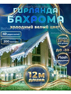 Гирлянда Бахрома уличная 12 м на дом белая холодная