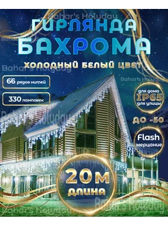 Гирлянда Бахрома уличная 20 м белая холодная на дом