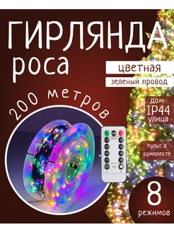 Гирлянда Роса 200 м на елку цветной свет мультиколор