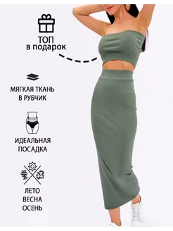 юбка миди летняя длинная лапша на резинке с топом