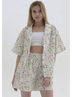 Пижама из хлопка со штанами и рубашкой, оверсайз