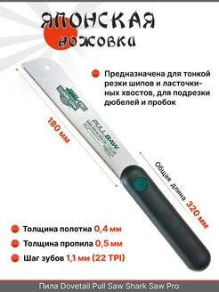 Японская ножовка для подрезки дюбелей Dovetail Pull Saw