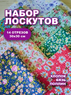 Набор лоскутов для рукоделия цветы 14шт 30х30см