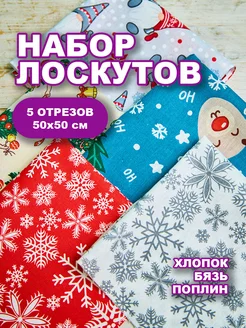 Набор лоскутов для рукоделия новый год 5шт 50х50см