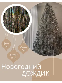 Дождик новогодний серебряный голографический на елку