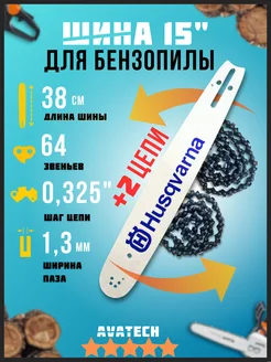 Шина 2 цепи для бензопилы 15"-0.325-1.3 64зв
