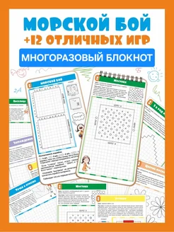 Игры в дорогу Морской бой + 12 игр. Многоразовые