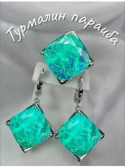 Турмалин параиба комплект серьги кольцо