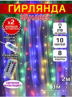 Гирлянда штора-роса 3х2 цветная с крючками и пультом