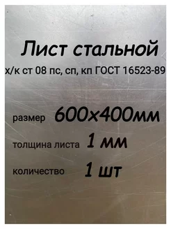 Лист металлический стальной 1,0х600х400 мм, 1 шт