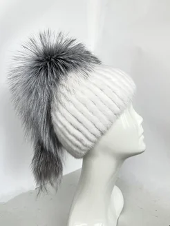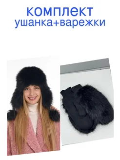 Ушанка меховая натуральный песец,варежки ЭКО мех