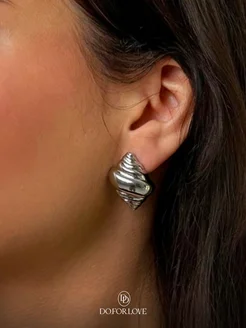 Серьги бижутерия крупные ракушки пусеты серебристые