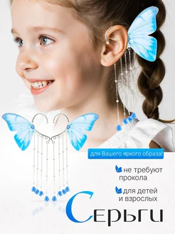 Украшения для девочек каффы крылья бабочки клипсы на уши