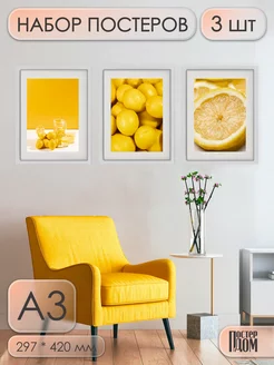 Постеры интерьерные на стену в кухню желтая эстетика Лимоны