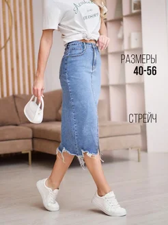 Юбка джинсовая миди с бахромой и разрезом спереди