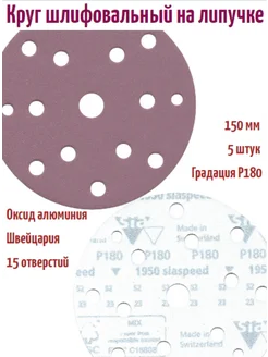 Шлифовальные круги на липучке 150 мм, Р180, 15 отв, 5 шт
