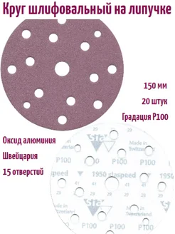 Шлифовальные круги на липучке 150 мм, Р100, 15 отв, 20 шт