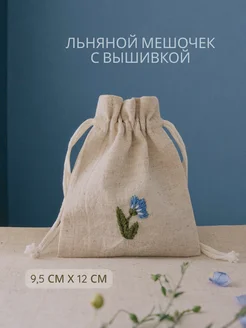 Мешочек льняной маленький с вышивкой для хранения и упаковки