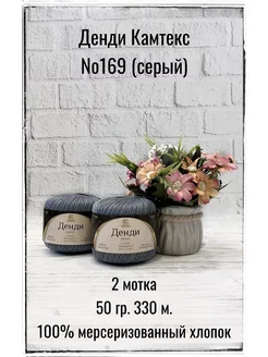 Пряжа для вязания крючком хлопковая Денди 169 серый 2 мотка
