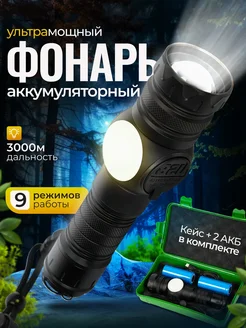 Фонарик аккумуляторный ручной с магнитом в кейсе