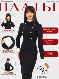 Платье черное со съемным воротником в офис и вечернее