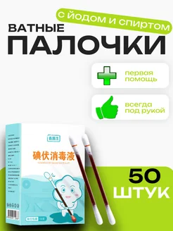 Набор Ватные палочки с йодом и спиртом 50 штук