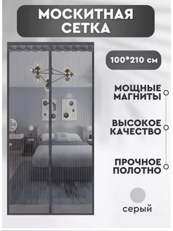 Москитная сетка на дверь магнитная 100*210 серый
