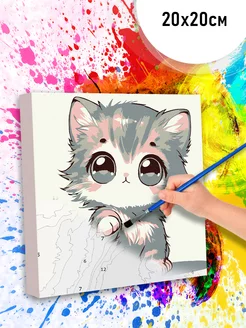 Картина по номерам для детей Котик 20х20 см