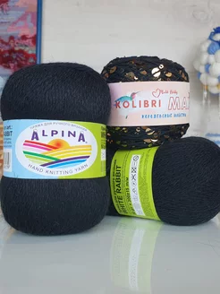 Пух кролика с пайетками цвет 27 чёрный с золотом