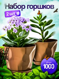 Горшок для цветов 1 л маленький пластиковый с поддоном 2 шт